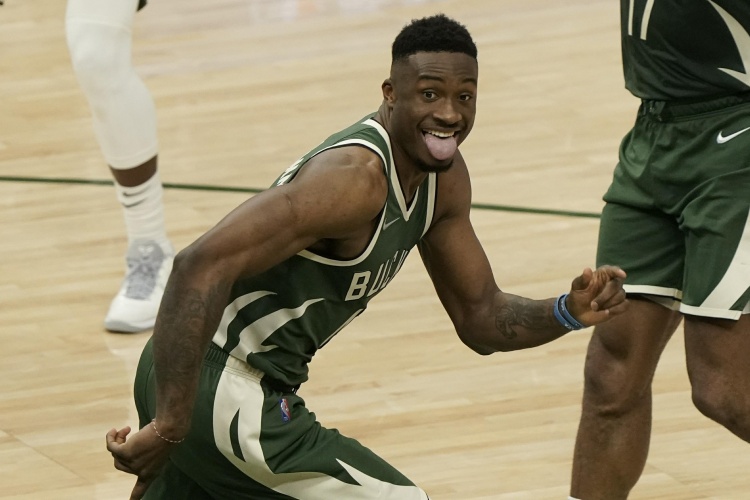 GIF-字母哥哥空切篮下 无人盯防轻松上演双手扣篮